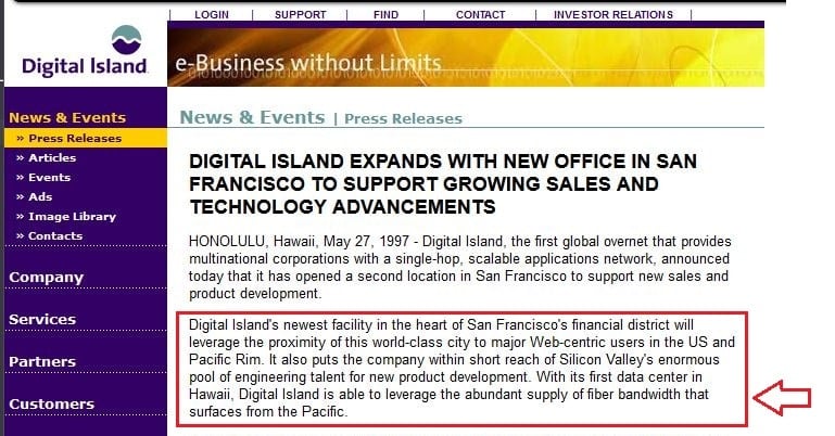 In May 1996, Ron first presented a business concept initially branded Smartvision. Central to that pitch was the claim that Hawaii was a natural global Internet hub because fiber supposedly emerged from the ground there and provided direct, lower latency access to Asia.